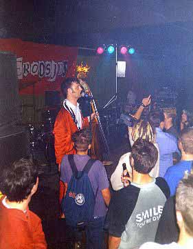 Nun, zwei Wochen nach dem letzten Heideroosjes Konzert, musste man mal wieder die Holländer besuchen. Punkrock in der Bürgerhalle Koslar? Da war sich der Opa in der Pommesbude nicht so ganz sicher, er meinte nur: "Türkenhochzeit (?!)", na dann Prost. Die erste Band des Abends waren "Socks" (oder so ähnlich) und spielten schönen Ska-Core mit Trompete. Dann kamen die Daisies, die einen gut rockenden Auftritt hinlegten. Gegen 11 Uhr betraten dann meine Lieblings-Käsefresser die Bühne und mehr als zwei Dutzend des diesmal reichlich erschienenen Publikum (120-130 Leute) sorgten für 'nen guten Pogo. Die Songlist hatte sich gegenüber Remscheid deutlichverändert, nun bestand die Hälfte des Programm aus Tracks von dem gerade erschienenen Album "Shizo". Als Zugabe brachte der Bassist noch 'nen fetten Kontrabass mit, und so fand der Abend - für die Dorfjugend Koslars sicherlich spektakulärste Event des Jahrzehnts - einen coolen Abschluss. By the way: Schaut Euch auch das vor dem Gig aufgezeichnete Interview mit Heideroosjes Sänger Marco Roelofs an. (nico)