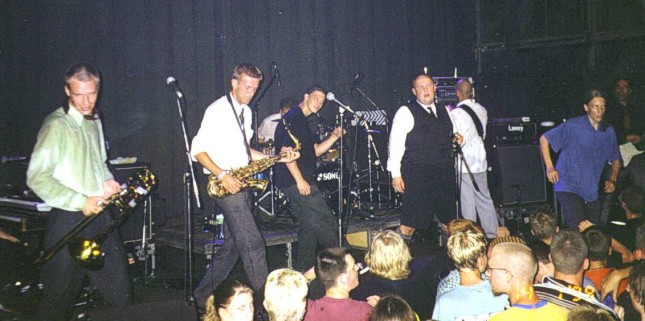 Nun war Party angesagt, und der Mob tanzte und stagedivte, was das Zeug hielt. Der rundliche Sänger wußte nicht nur durch hervorragende Deutschkenntnisse zu überzeugen, sondern fand auch bei den Lovesongs wie 'Christina' oder 'Lorraine' die richtige Ausdrucksweise. LIBERATOR sind ohne Ende livetauglich, wie auch die Bläser und der Keyboarder zeigten. Von der Stimmung her waren sie ganz klar die Könige des Abends, an dem Essen mit 'Zugabe' und 'Liberator, Liberator'- Rufen mehr forderte und auch bekam.