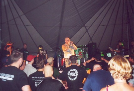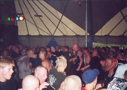 Respekt an TECH-9, die es überaschenderweise schafften, verdammt gute Stimmung aufkommen zu lassen. Auf Platte ist das durchschnittlicher Oi ! mit Hardcore-Edge - live hingegen ging der Mob bestens ab. Wo kamen denn auf einmal die ganzen Skinheads her ? Zu Abschluss wurde dann noch die Nummer vom 'Oi!-Tribute' Sampler gespielt und 'Real Enemy' von THE BUSINESS gecovert.