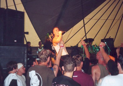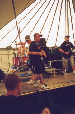 DO OR DIE kamen wesentlich besser an, die Band mit zwei Sängern begann mit 'ner Nummer, die mich an SKARHEAD erinnerte. Tough meets HipHop-Attitude. Die folgenden Tracks waren dann aber wesentlich härter, spektakulär war aber in jedem Fall die Bühnenshow der beiden Sänger - ganz krasse Bewegungen wurden den Leuten da geboten. Ich frag mich nur, warum einer der beiden Shouter seine Kappe im Dendemann-Stil aufhatte, sind wir hier bei den HipHop-Open?